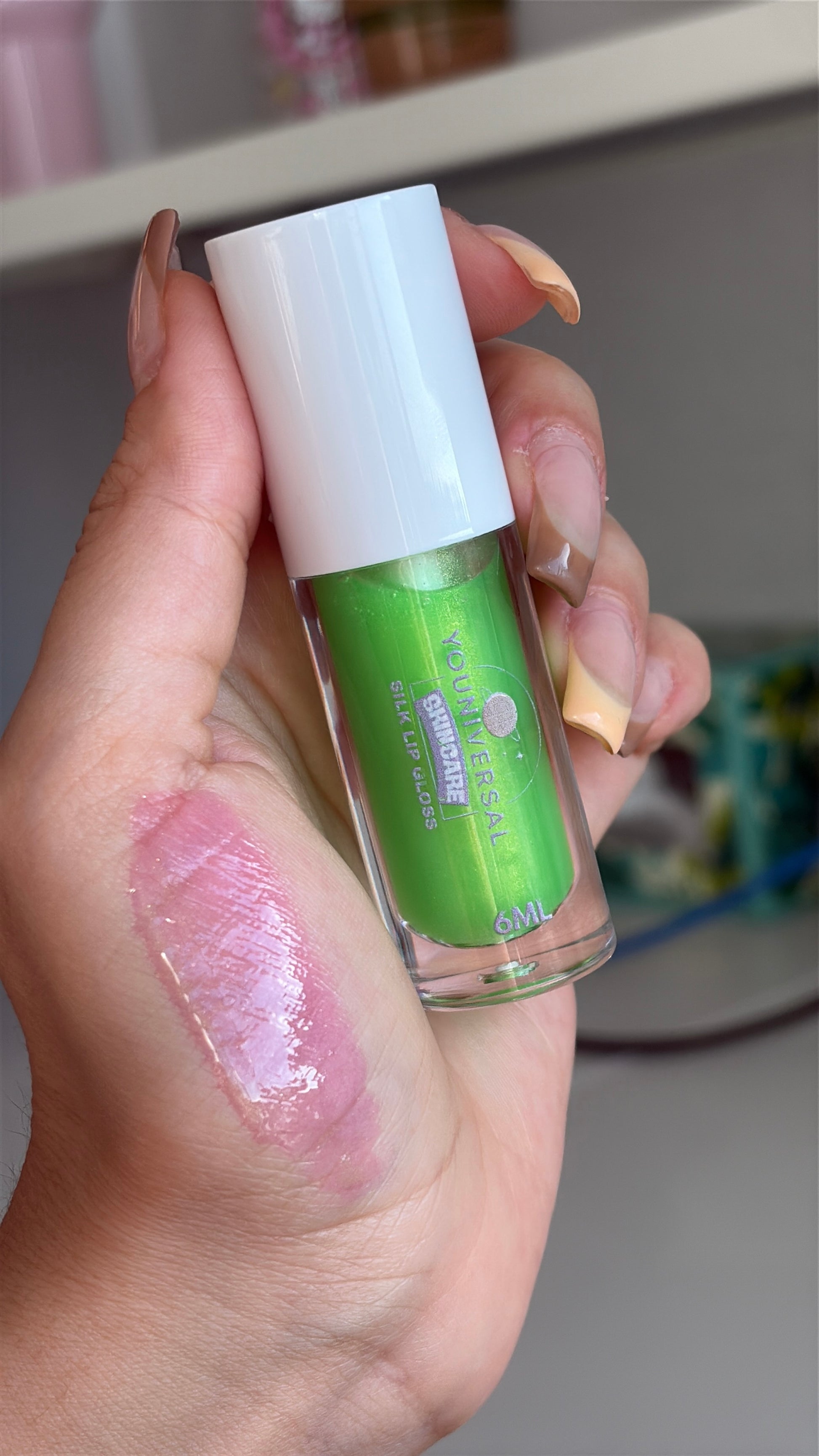 A luminous green SHIMMER with nostalgic fruity cereal notes that melts into a personalized soft-pink hue. High-gloss finish, long-lasting stain, and uniquely yours.